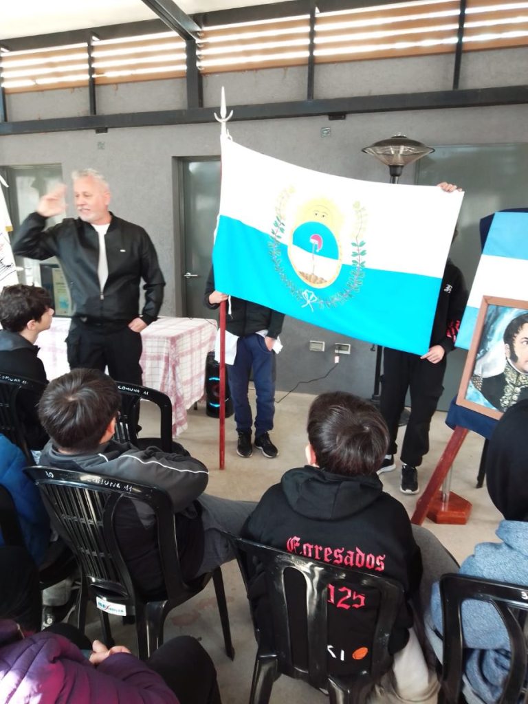 Que por supuesto, también fortaleció a la que recién estaba naciendo en nuestro territorio. También se destacó por su renunciamiento a derramar la sangre entre los compatriotas. Que lo enaltece como ser humano lejos de la mezquindad del poder. Quizás, otro aspecto que lo caracterizaba fue su papel de padre y abuelo amoroso, en lo personal. El día jueves 14 de agosto a las 11 horas en el Sum de la Plaza “El Patio” Villa del Parque situada en Santo Tomé 3460, el equipo de Participación Ciudadana de Comuna 11, con la subgerente Lucía Olivera y la referente de Educación Susana Luquet, realizó un acto muy emotivo junto los chicos del séptimo grado del Instituto de Enseñanza Superior Juan B. Justo.